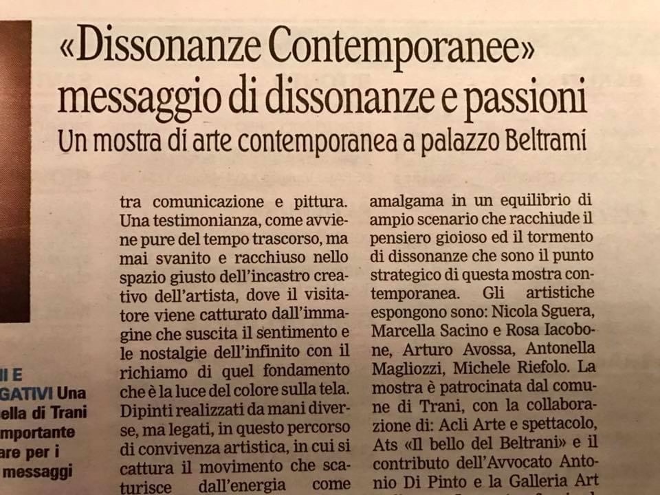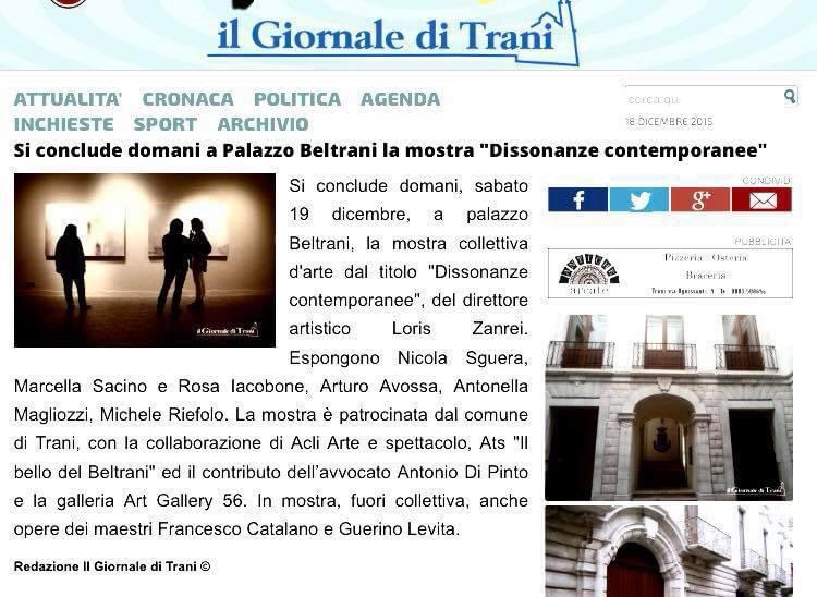 Dal 28 Novembre 2015 viene nominato Direttore Artistico della Pinacoteca Palazzo Beltrani “Ivo Scaringi “ di Trani (Puglia) per la mostra ”Dissonanze Contemporanee” mostra collettiva di artisti italiani.